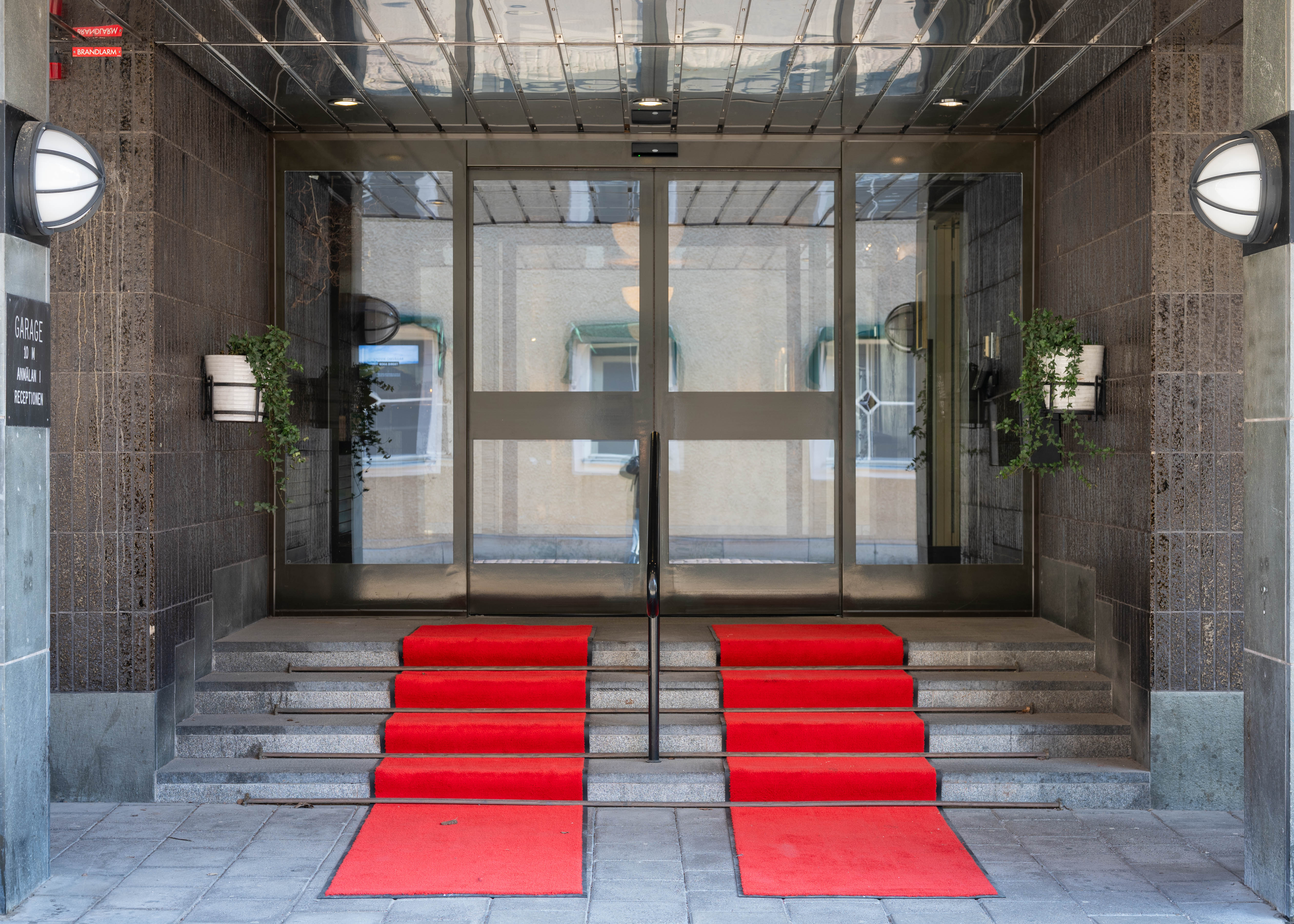 Röda mattan dubblerad. Snyggt med speglingen som du fick på köpet.