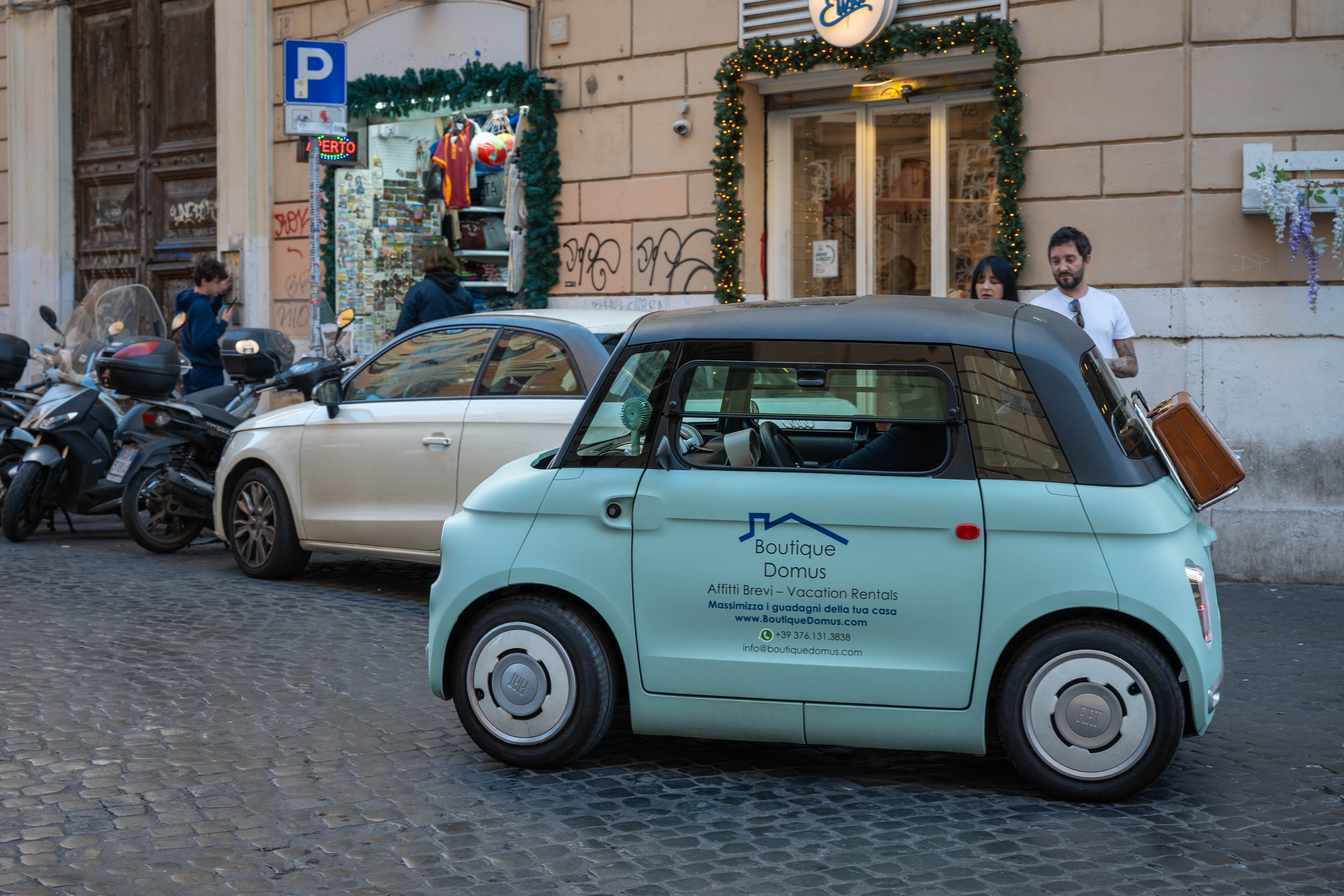 Men titta!! Vilken söt liten bil du hittat. Inget att köra med på motorvägen men säkert praktisk för små korta ärenden i en småstad.