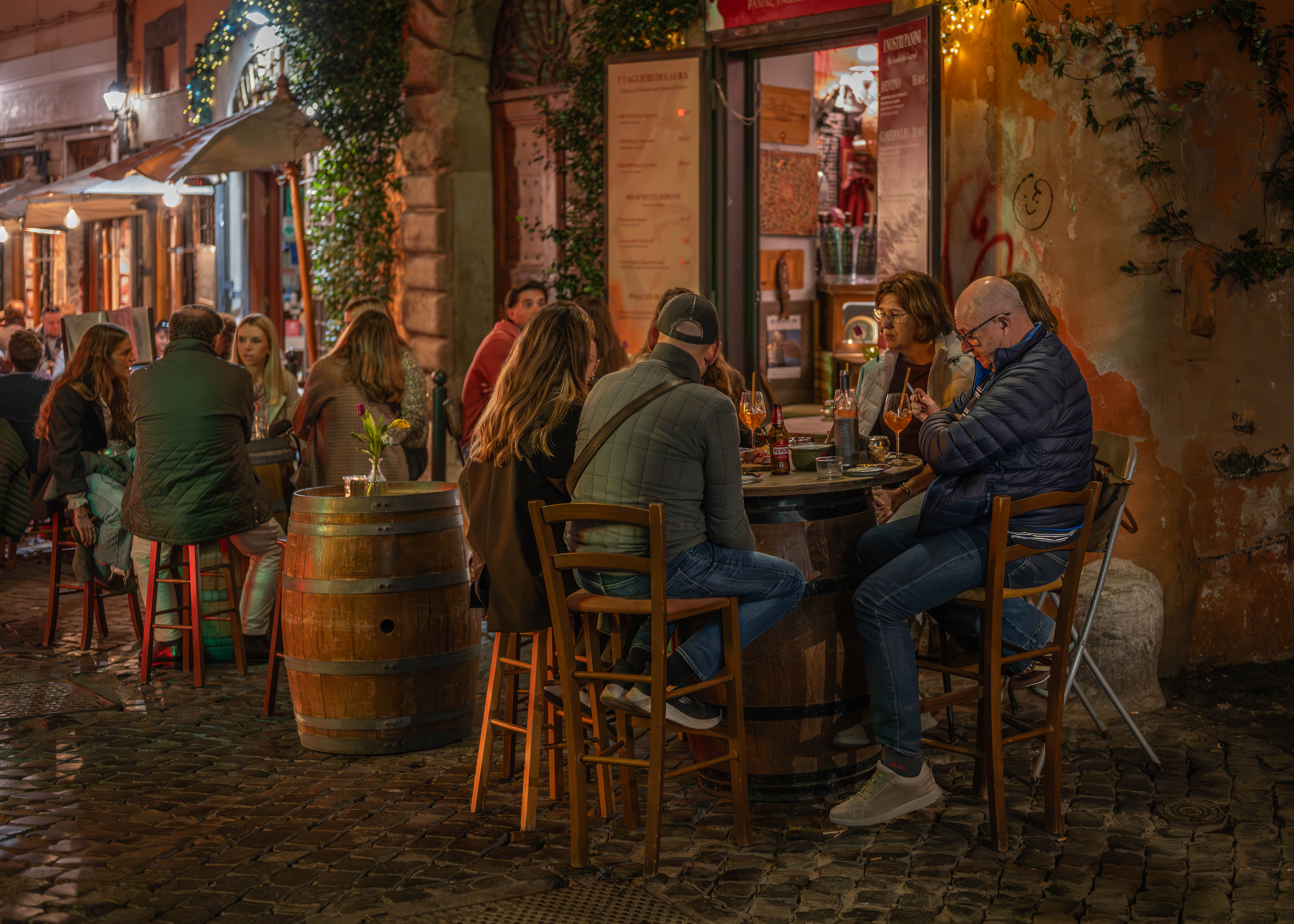 3. Det finns alltid så mycket att se i dina bilder från serveringar. Här pratar folk med varandra utom han som ser ut att nicka till. Snyggt fotad kvällsstämning.