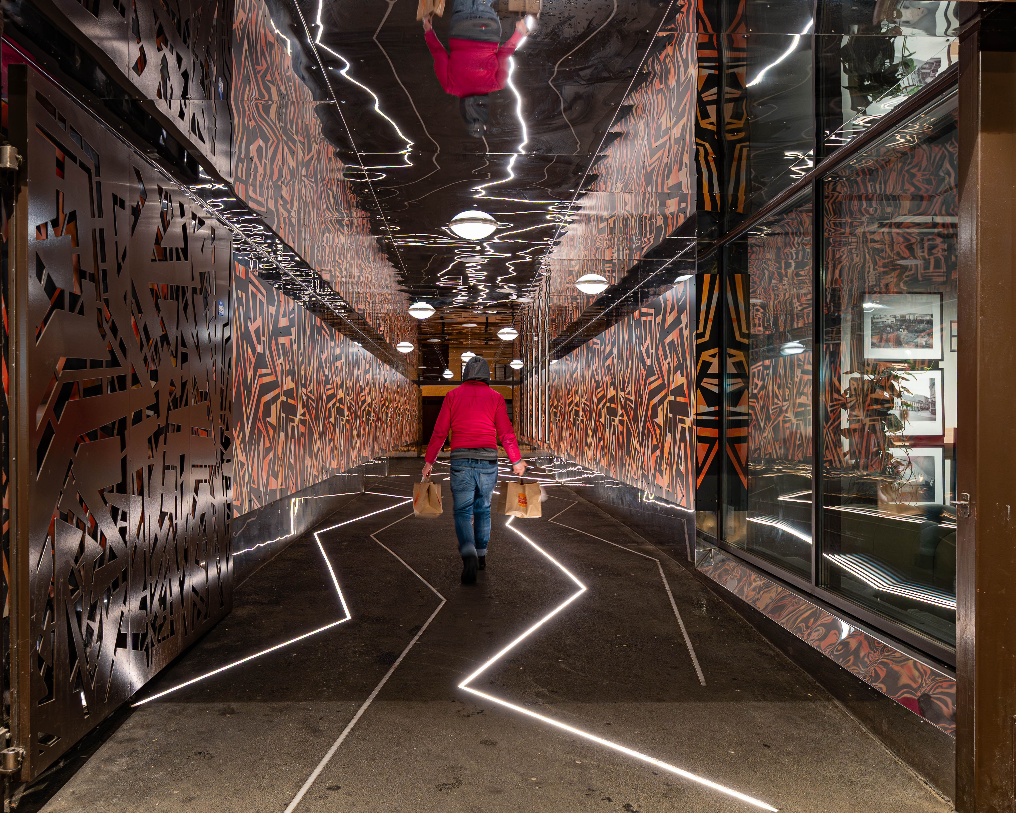 Har en känsla av att jag sett ett foto tidigare från samma gångtunnel. Effektfullt med alla olika mönster, speglingarna och ljusen. Att det inte känns rörigt tror jag beror på den dämpade färgskalan. Snyggt!