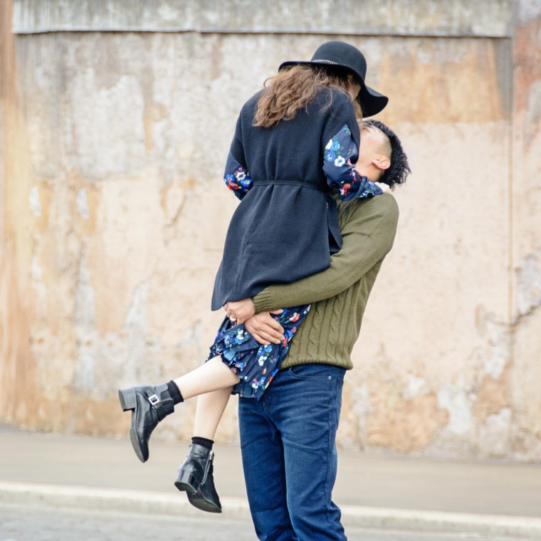 En grupp japaner fotograferade varandra mitt ute på Via dei Fori Imperiali i Rom med Colosseum långt i bakgrunden (till höger utanför bilden). De försöker ofta göra något annorlunda på bild, ett hopp, ett lyft, en gest, en speciell ställning eller något annat. Här var det flera par, som i tur och ordning skulle plåtas på det här sättet 🙂