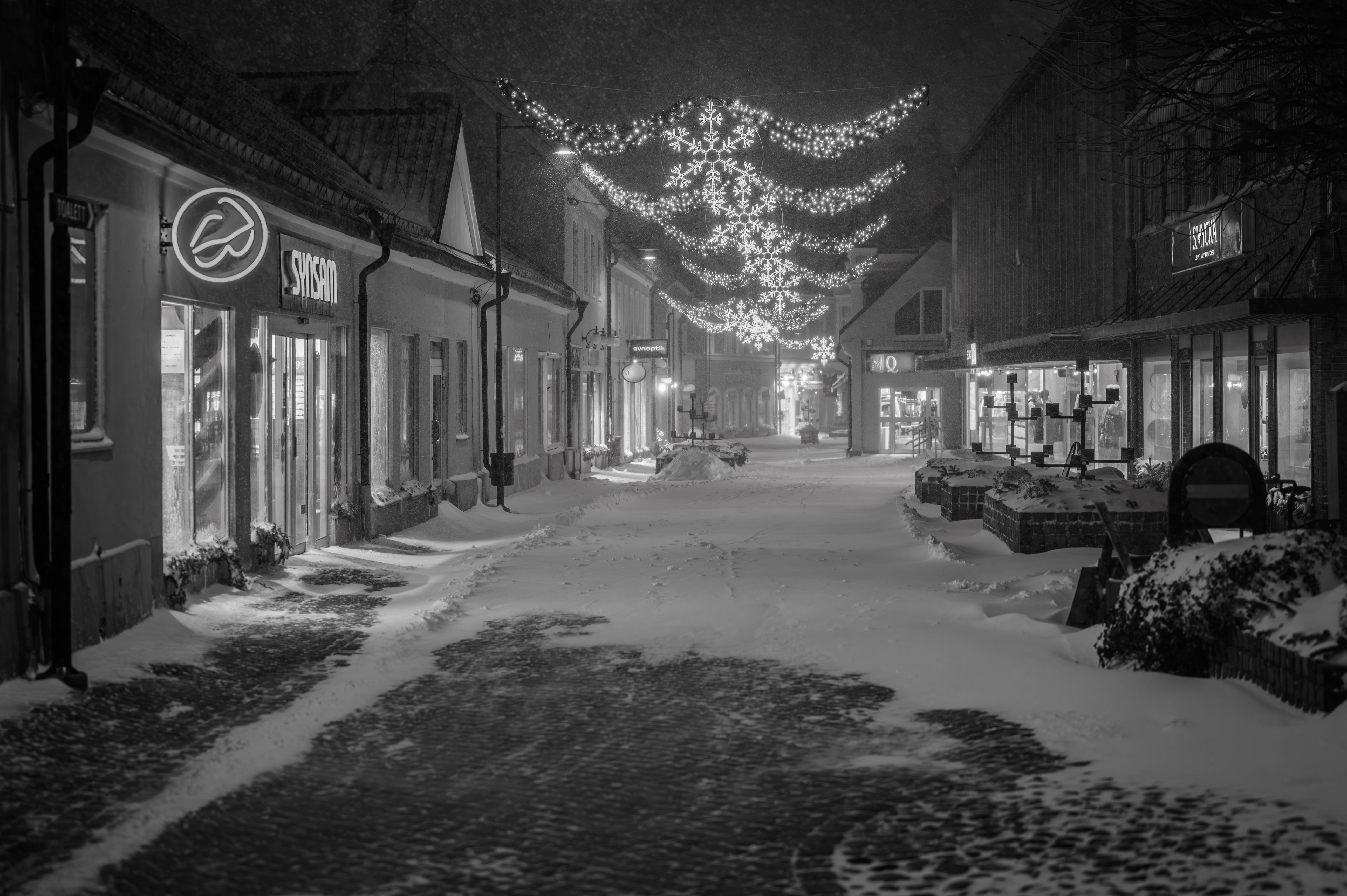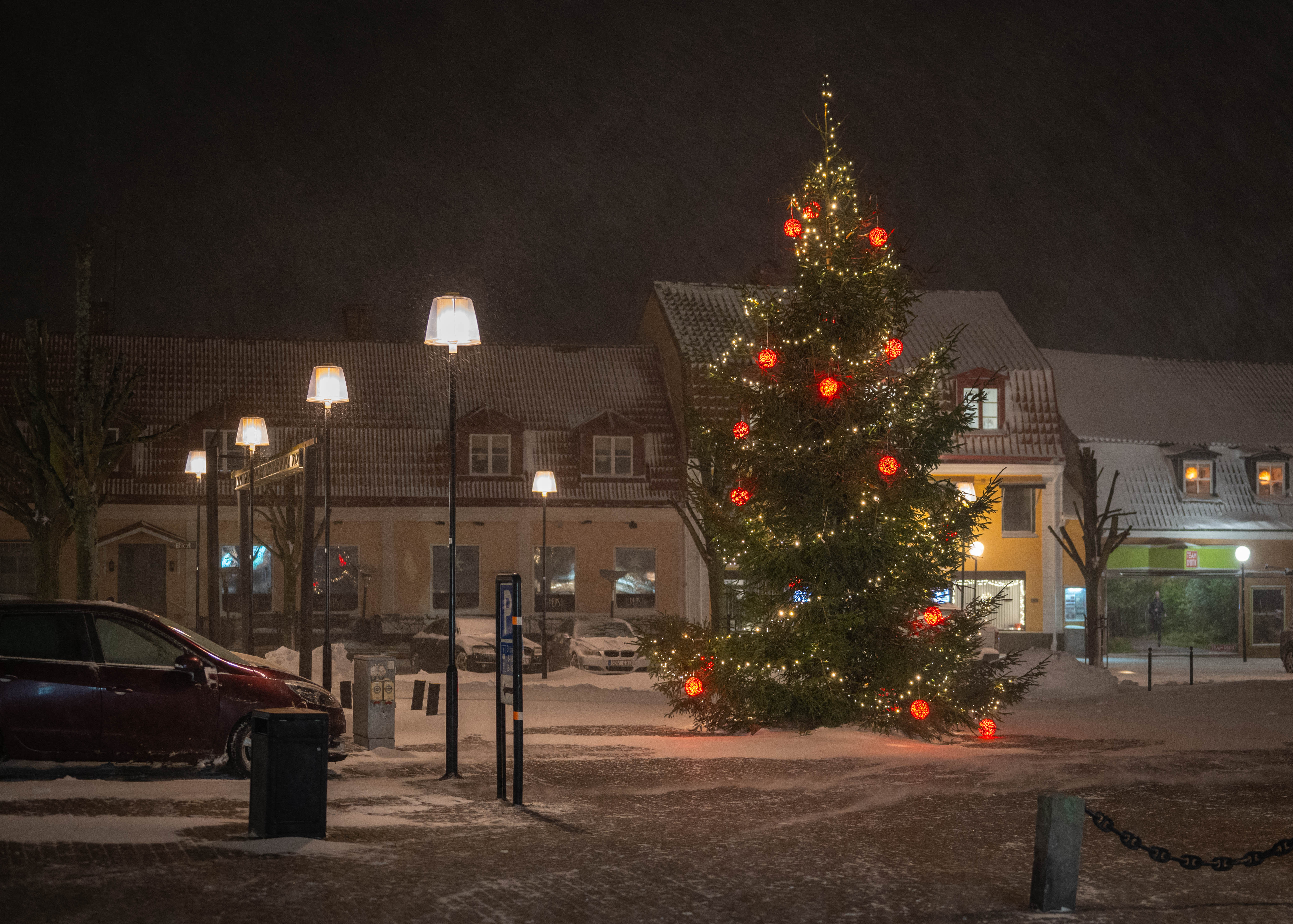 Med den här bilden från den 3 januari 2024 avslutar jag årets utmaning. Den granen som nu står på torget ser ungefär likadan ut som den på bilden. Men någon snö har vi inte och någon vit jul lär det inte heller bli enligt prognoserna. Vi får vara nöjda om det åtminstone inte regnar här 🙂 God Jul och Gott Nytt År!