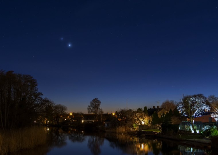 279 Stjärnparad (76/365) Publicerat den 13 mars, 202313 mars, 2023 av claesbilder18 kommentarer Här syns Jupiter och Venus paradera på himlen den 28 februari kl 19.09. De är visserligen planeter, men upplevs väl härifrån oftast som stjärnor 🙂 Dela detta: Klicka för att dela på Facebook (Öppnas i ett nytt fönster) Facebook Klicka för att dela via LinkedIn (Öppnas i ett nytt fönster) LinkedIn Klicka för att dela på Tumblr (Öppnas i ett nytt fönster) Tumblr Klicka för att dela på X (Öppnas i ett nytt fönster) X Mer Klicka för att e-posta en länk till en vän (Öppnas i ett nytt fönster) E-post Klicka för att dela på Pocket (Öppnas i ett nytt fönster) Pocket Klicka för att dela på Reddit (Öppnas i ett nytt fönster) Reddit Gilla Laddar in …