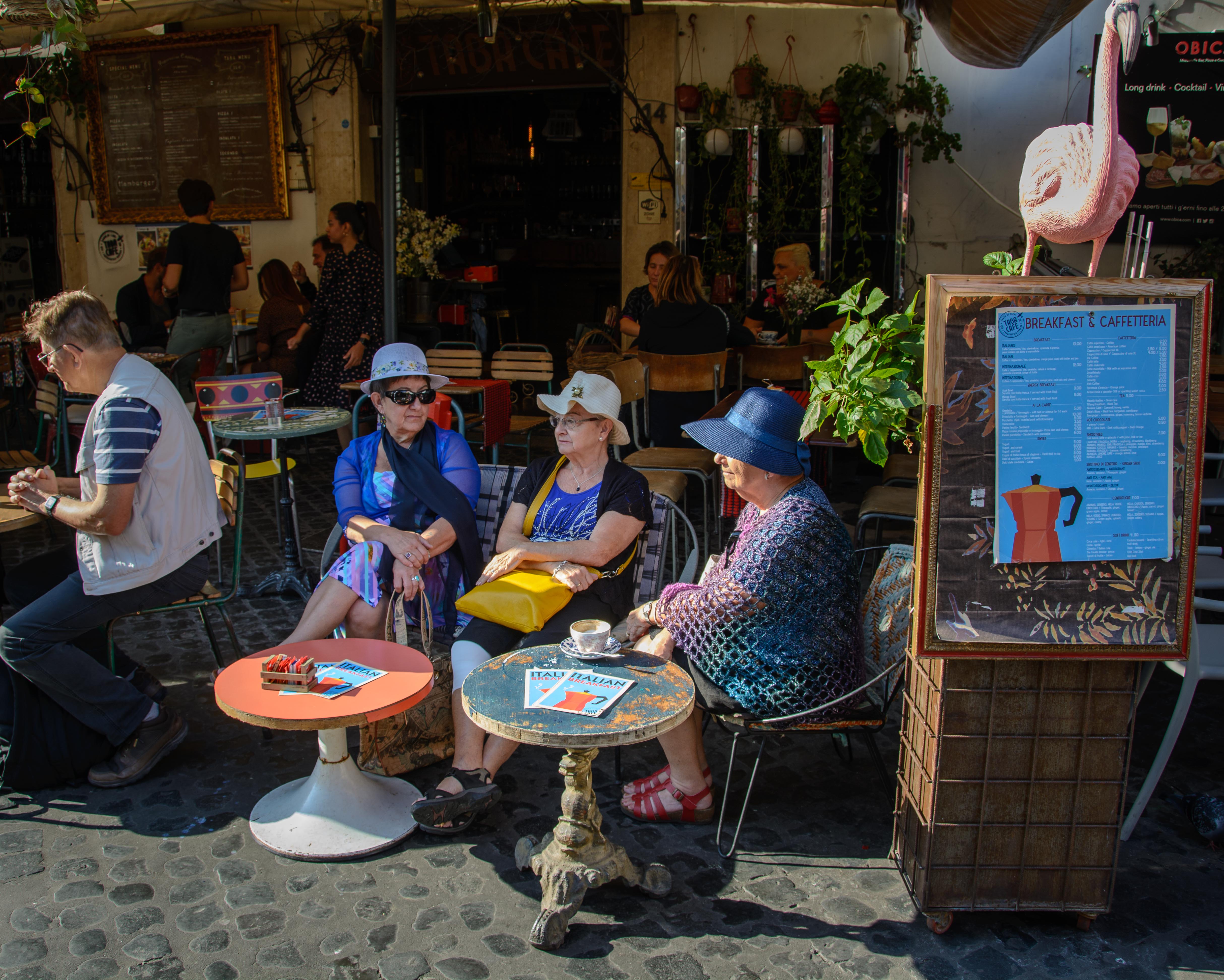 Här är en man som verkligen håller ställningarna. Bilden tog jag i oktober i år på marknaden på Campo de’ Fiori i Rom. Mannen demonstrerar och säljer olika produkter, som man använder för att strimla och forma grönsaker och rotfrukter på alla möjliga sätt. När vi var i Rom i oktober 2011 så satt han redan då på samma marknad (se bilden här under) och demonstrerade och sålde liknande produkter.