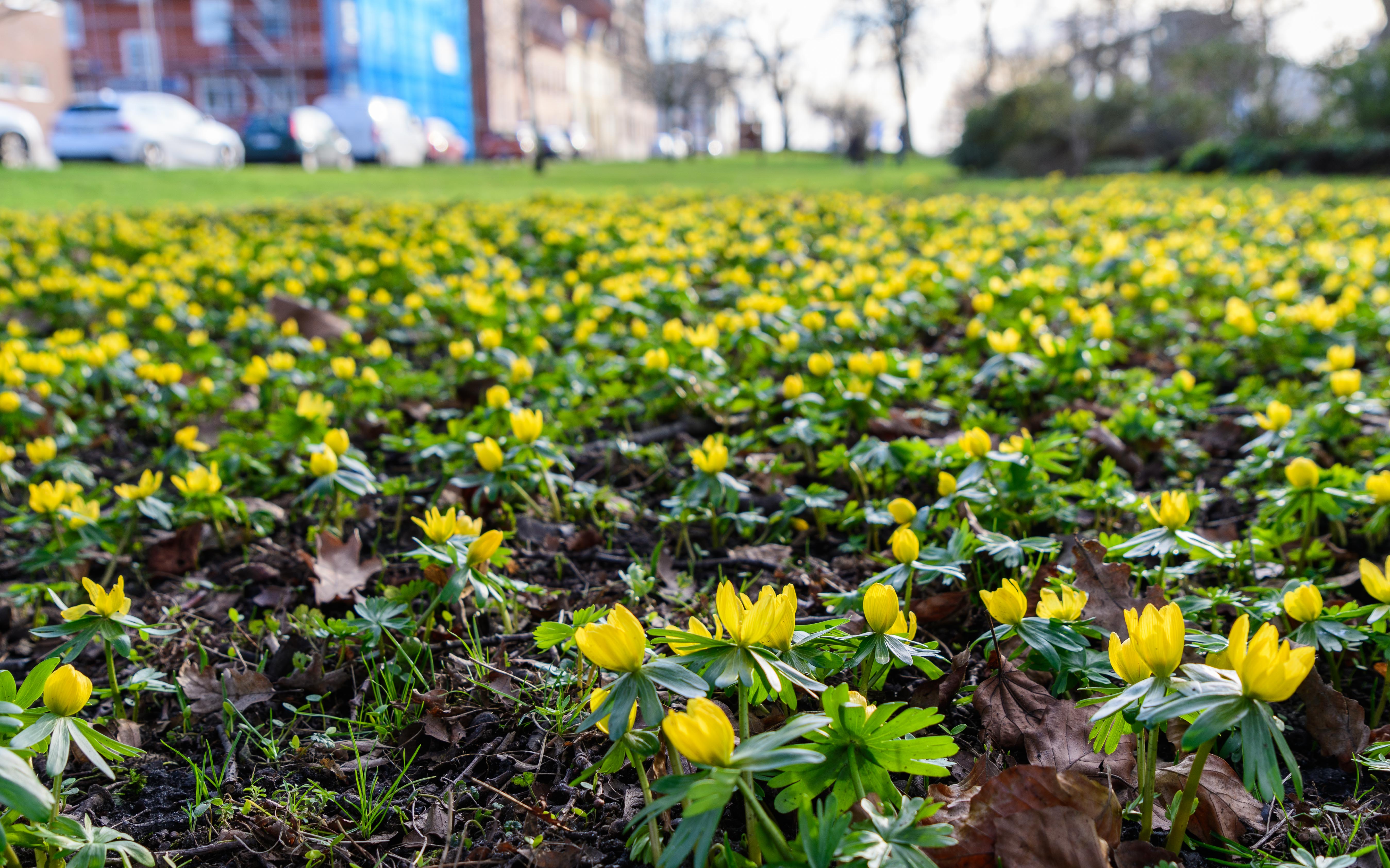 What! Ja, det var vad jag och min sambo tänkte när vi i måndags var i Landskrona och såg det här. Vintergäck och snödroppar har ju blommat i flera veckor nu. Men här hade även körsbärsträd börjat blomma. Vet inte vad det är för sort, men det kan ju inte vara rätt tid för dem nu.