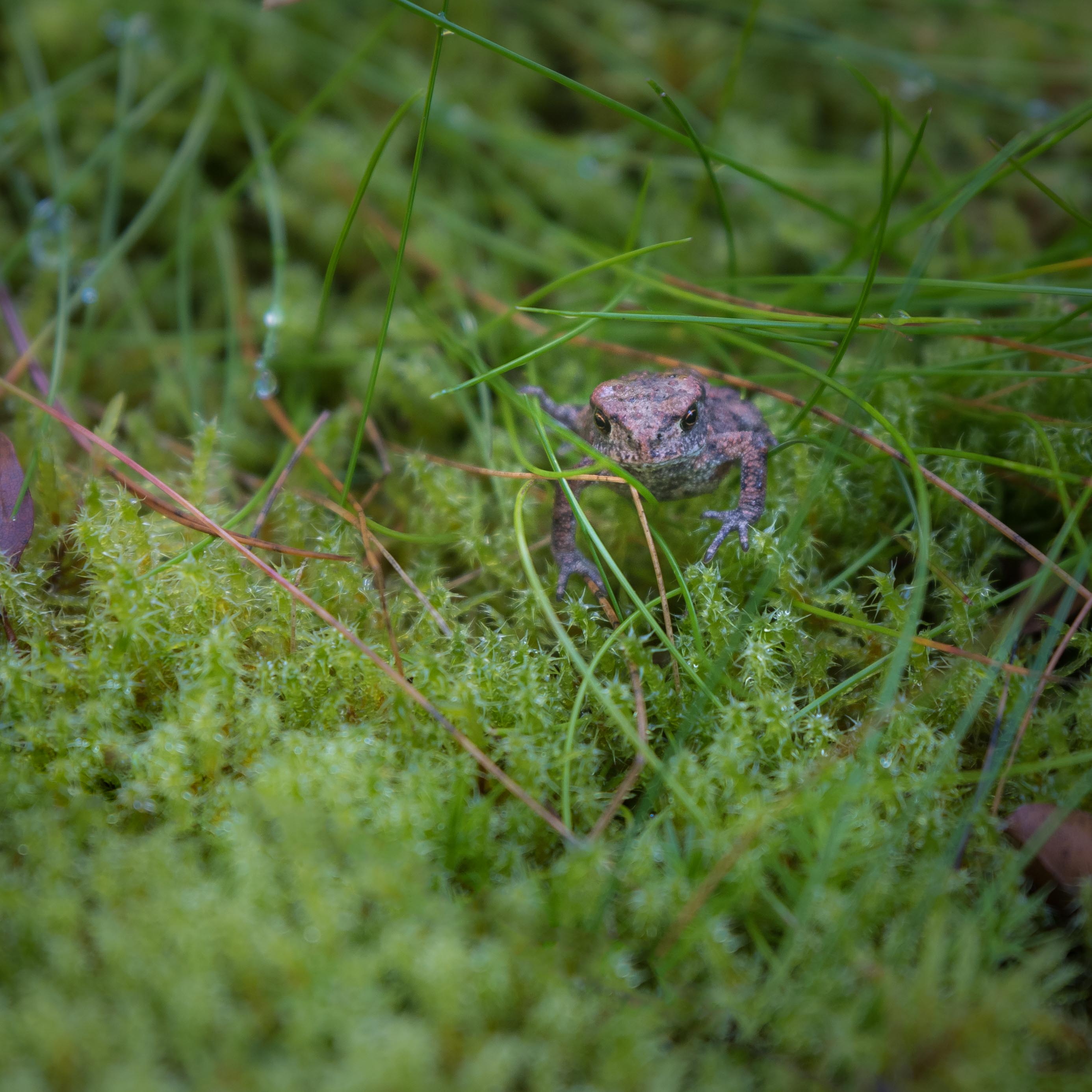 Plötsligt dök den här lilla krabaten upp i mossan.