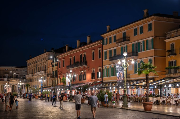 Här samlas mycket folk på restaurangerna runt torget för att ta en drink eller äta något och vänta in kvällens operaföreställning på amfiteatern som ligger strax intill. Eller också sitter man där bara för att studera folklivet 🙂